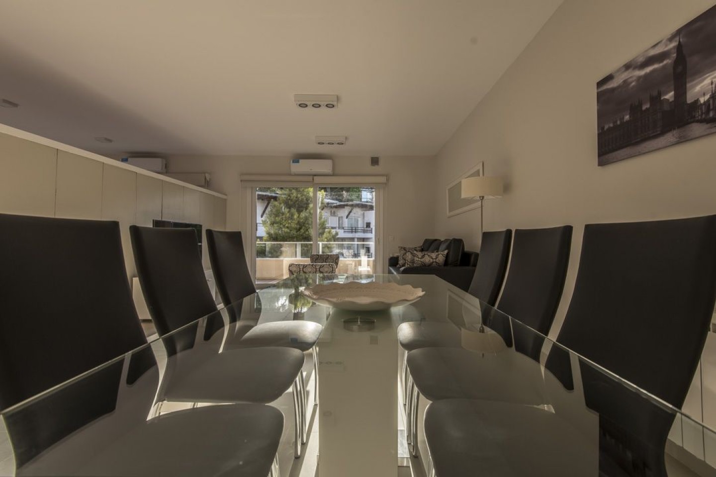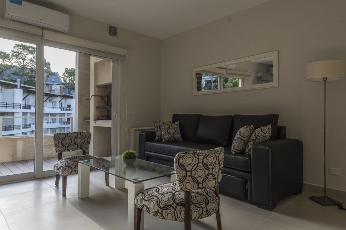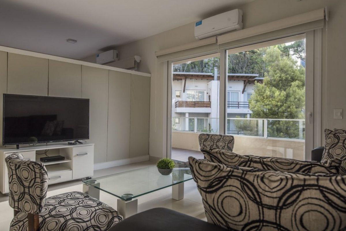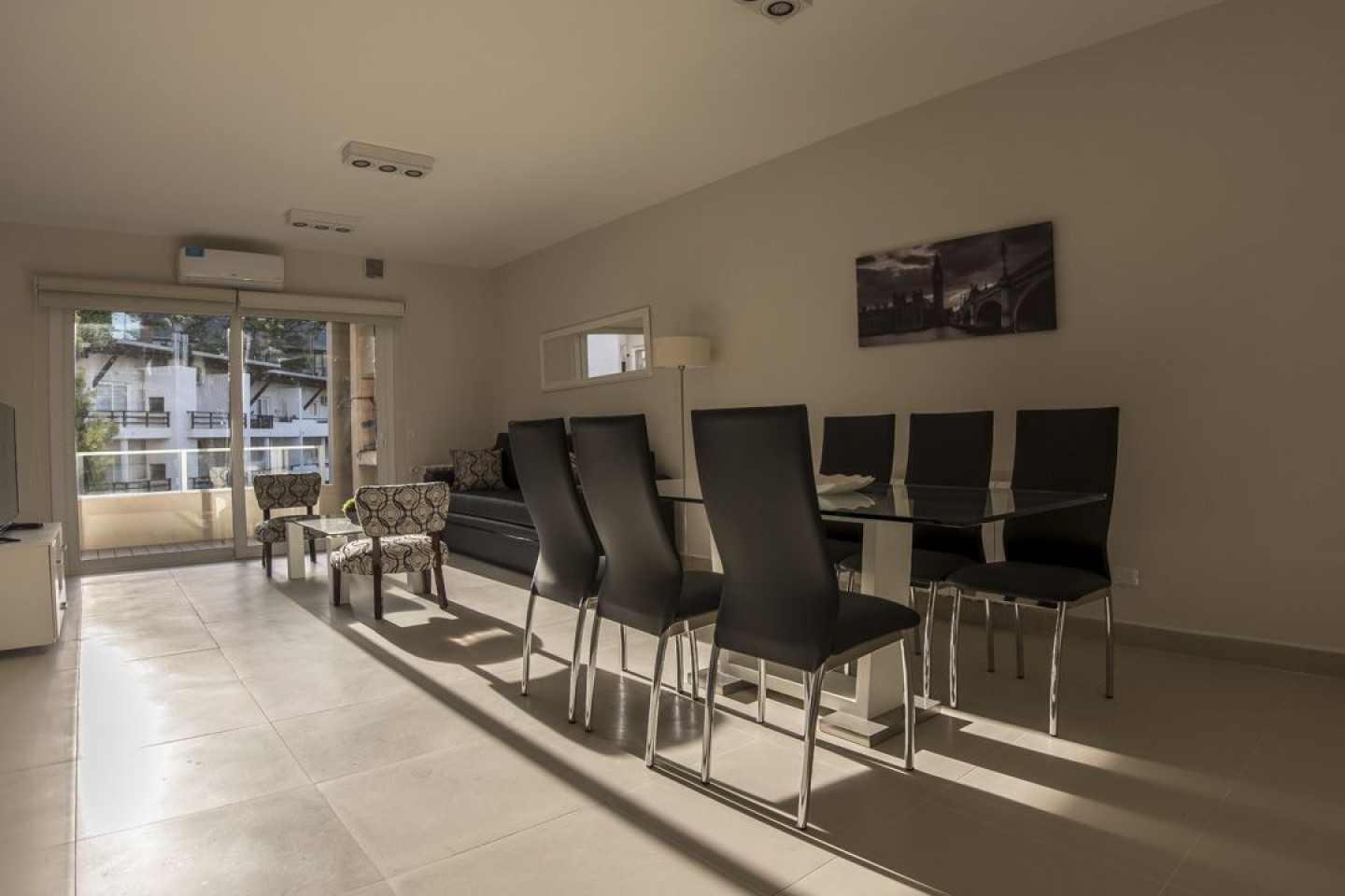 Cuenta con cocina completa, living comedor con smart de 49 pulgadas, wifi, 2 baños completos, dormitorio con cama matrimonial con tv smart de 32, segundo dormitorio, calefacción por radiadores en todos los ambientes, aire acondicionado y balcón corrido con parrilla.